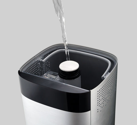 The top filling large room humidifier features a detachable water tank with a secure built-in handle and an extra wide opening for easy filling and cleaning. This user friendly warm mist humidifier will take up to 1 minute of your time for effortless refilling. Requires little to no maintenance. The top fill construction ensures reliable and leakproof operation for many years.